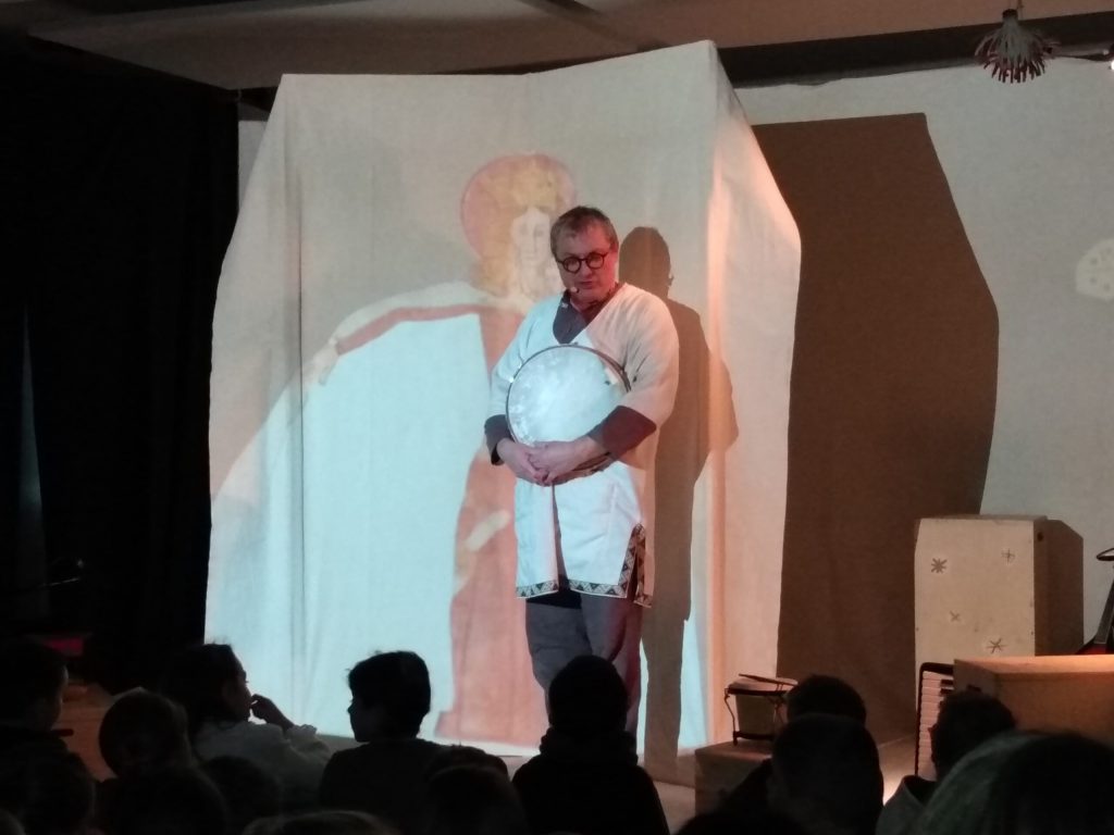 En ce jeudi, les élèves de l’école ont pu assister à un spectacle vivant. Le spectacle musical « Sous le manteau de Noël » leur a été présenté par Jean-Pierre Labbé. Il leur a conté la naissance de Jésus à travers un montage vidéo, l’interprétation d’une dizaine de chansons et l’utilisation d’une vingtaine d’instruments de musique, ce qui a impressionné les enfants.